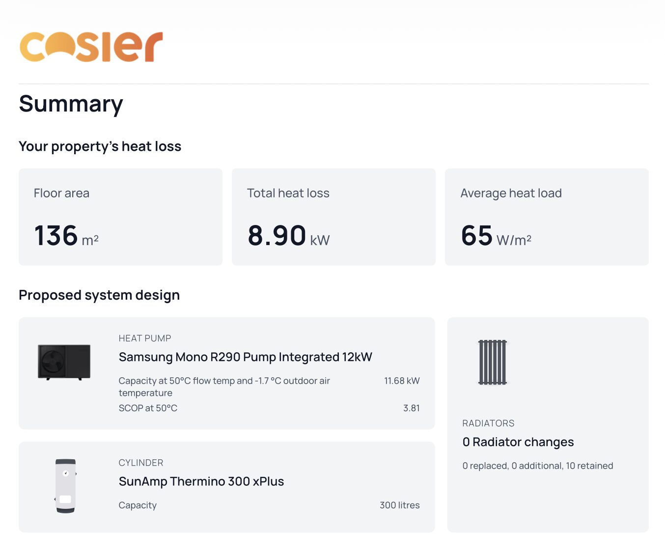- Radiator upgrade recommendations (if required)