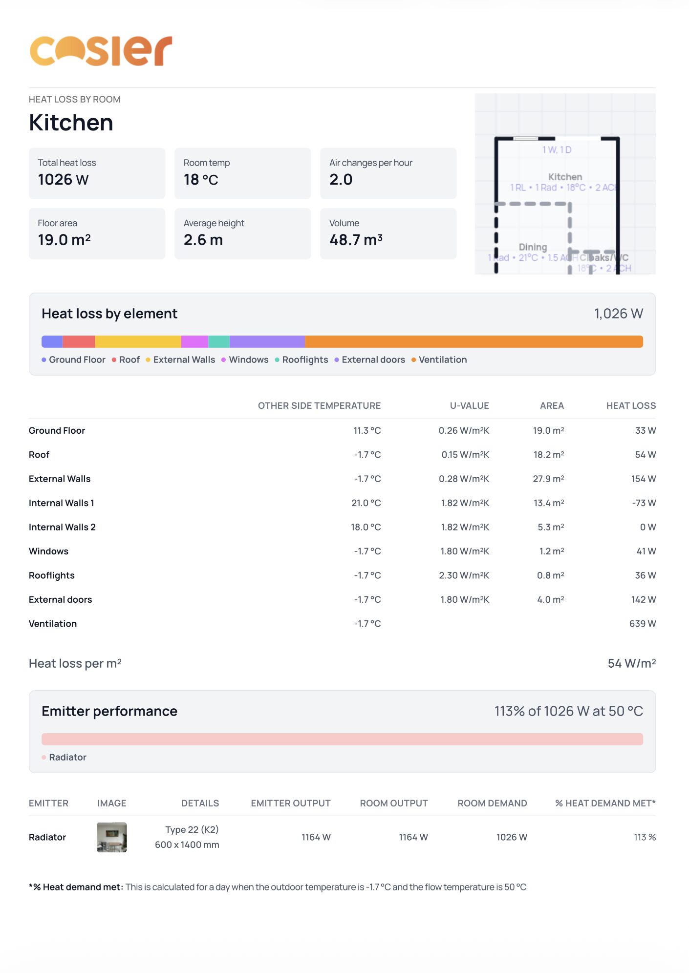 - A summary of the total property heat loss