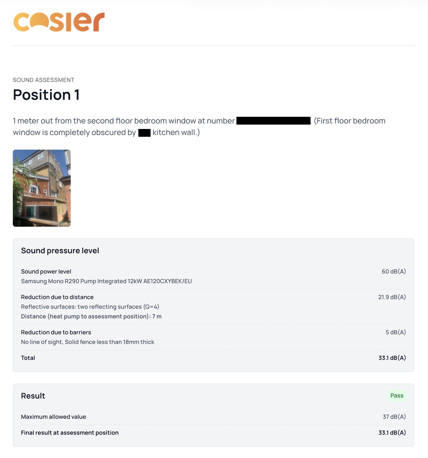 - Confirmation that the heat pump meets sound output requirements