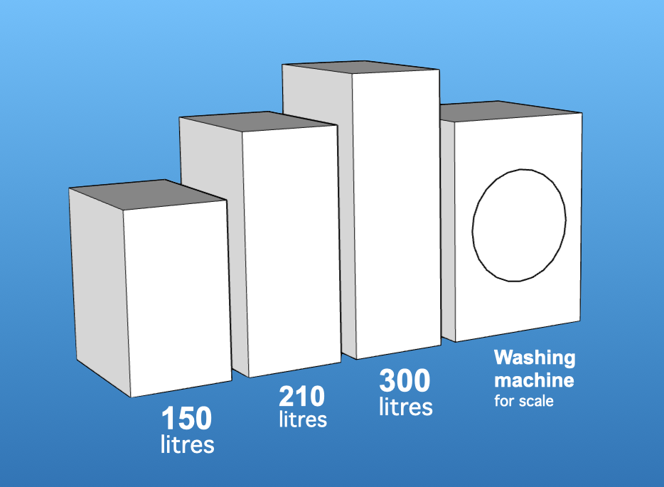 Equivalent hot water cylinder size